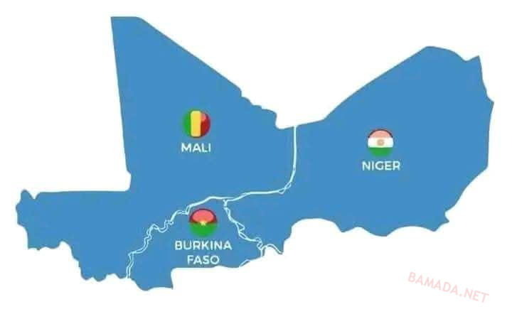 La carte des trois pays de l'Alliance des États du Sahel ( AES).